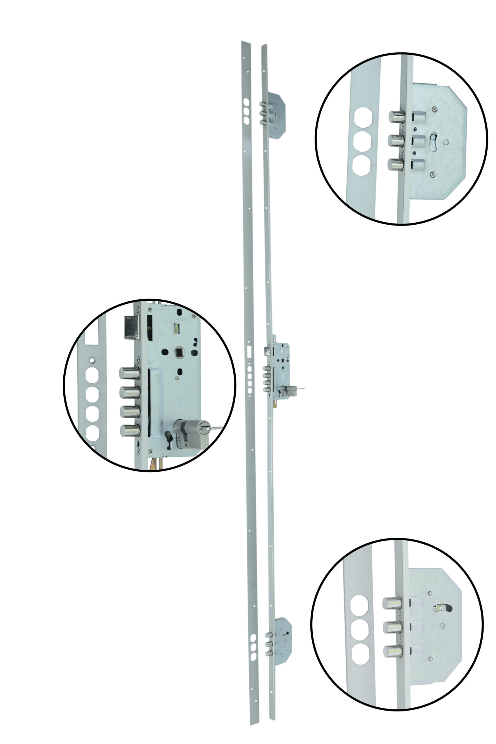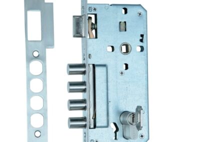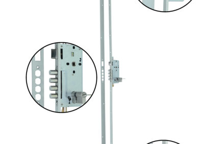 - Fechadura tetra embutida em tubo de aço;