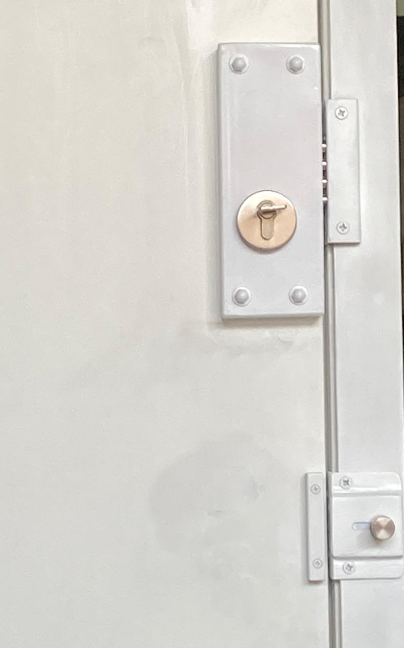 - Fechadura Adicional embutida em estrutura tubular de aço;
