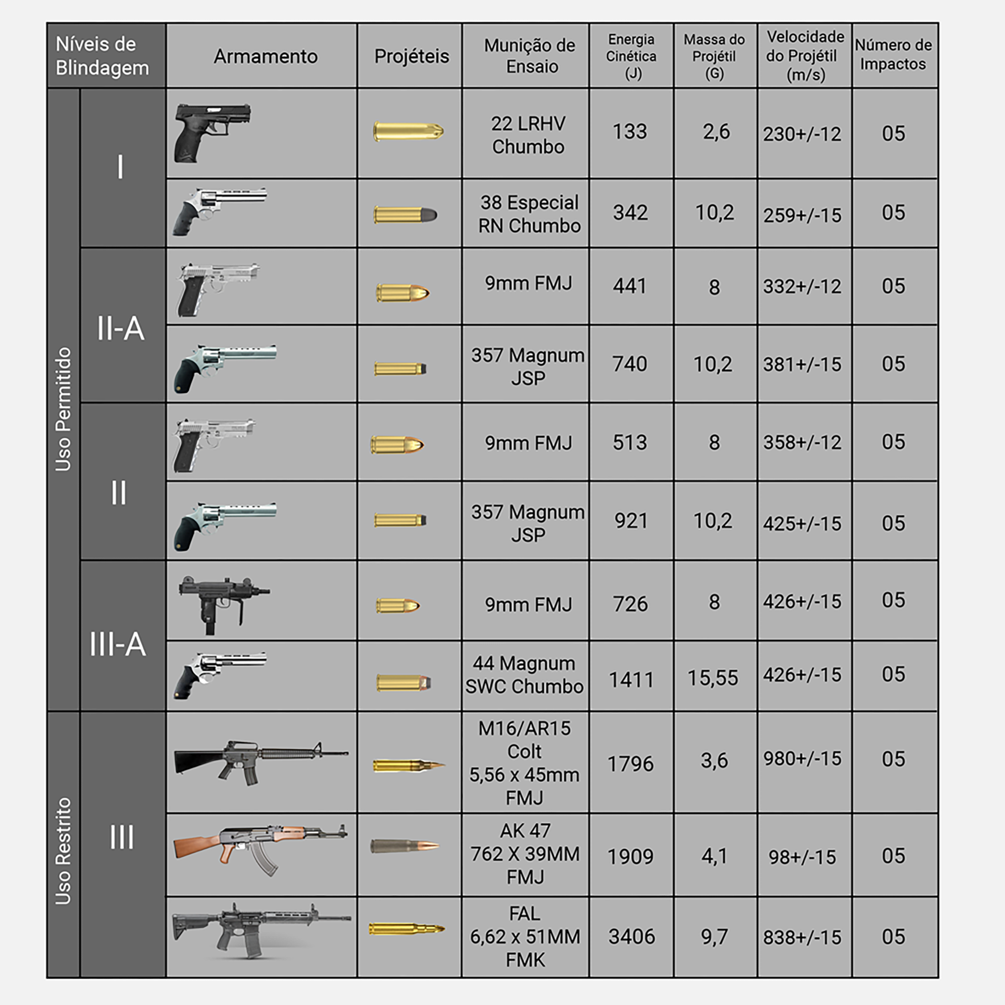 - Níveis de Blidagem: Portas Certificadas pelo Exército Brasileiro, NBR15000 nível IIIA, Resiste até disparos da .44Magnum.